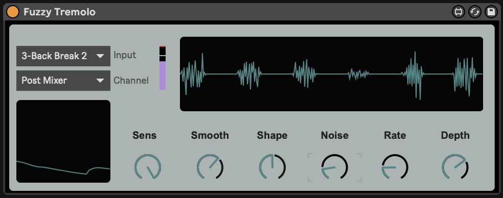 Control the smoothness of the sidechained input, the shape of the tremolo waveform (sine to square) as well as a pink noise generator which adds an extra dash of fuzzyness to the effect.